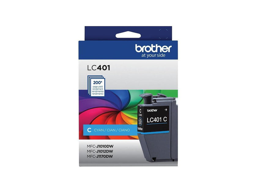 - DELIVERS SUPERIOR INKJET QUALITY: Brother Genuine LC401C Standard Yield Cyan Ink Cartridges deliver superior inkjet print quality with sharp prints you can count on for up to 200 pages.(1)