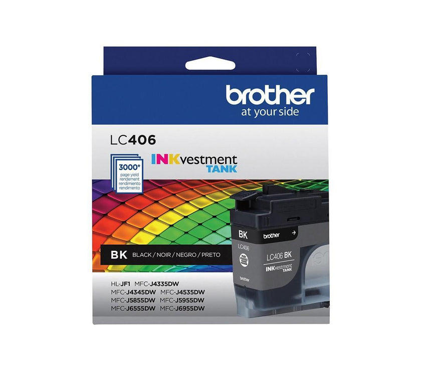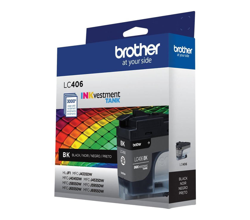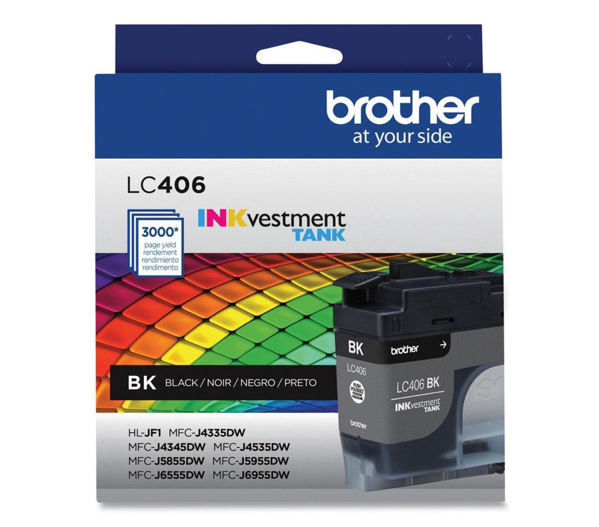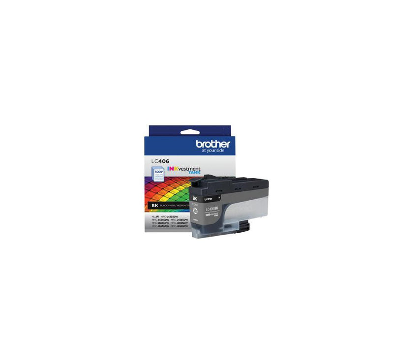 - DELIVERS SUPERIOR INKJET QUALITY: Brother Genuine LC406BK Standard Yield Black INKvestment Tank Ink Cartridgesdeliver superior inkjet print quality with sharp prints you can rely on for up to 3,000pages.(1)