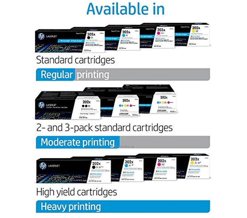 - What's in the box: 3 new Original HP 202X High-yield Toner Cartridges: 1 cyan, 1 magenta, 1 yellow (CF500XM)