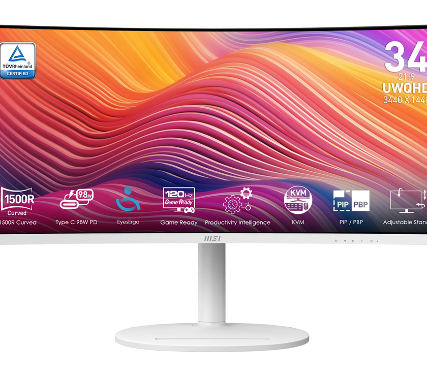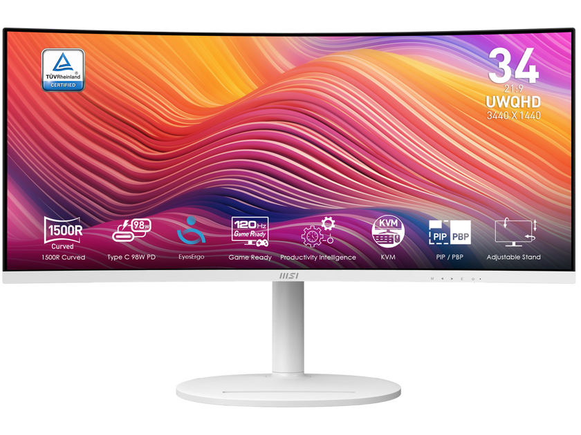 MSI 34" 120 Hz VA UWQHD Monitor 1ms (MPRT) / 4ms (GTG) Adaptive-Sync 3440 x 1440 Adobe RGB / DCI-P3 / sRGB: 92% / 95% / 119% Curved Modern MD342CQPW