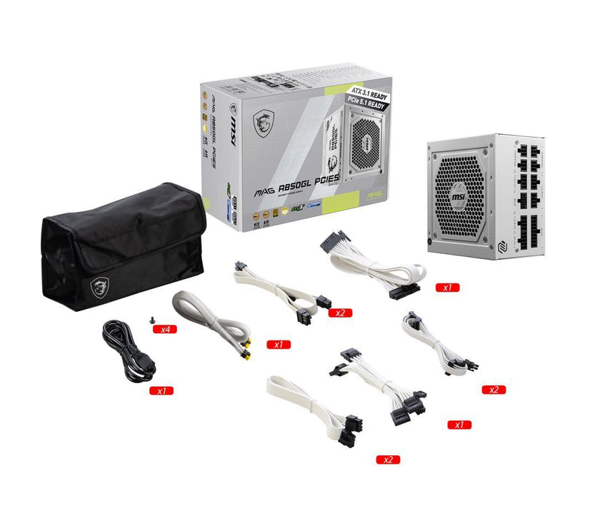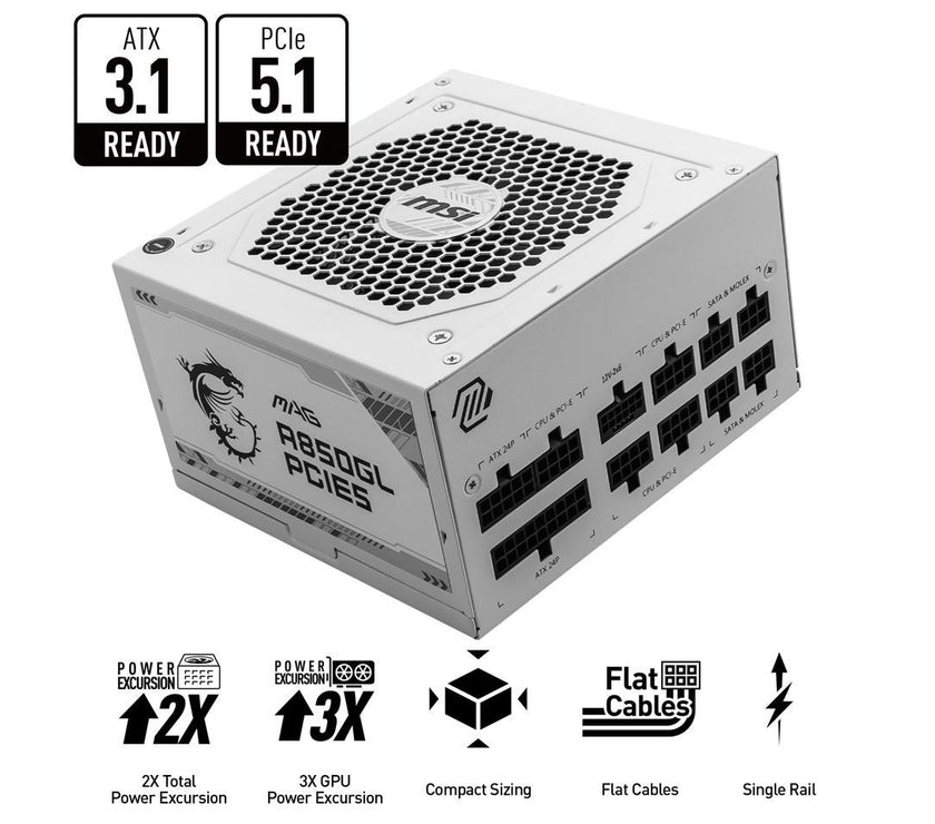 MSI MAG A850GL PCIE5 White, Fully-Modular, 80 Plus Gold, 850W Power Supply