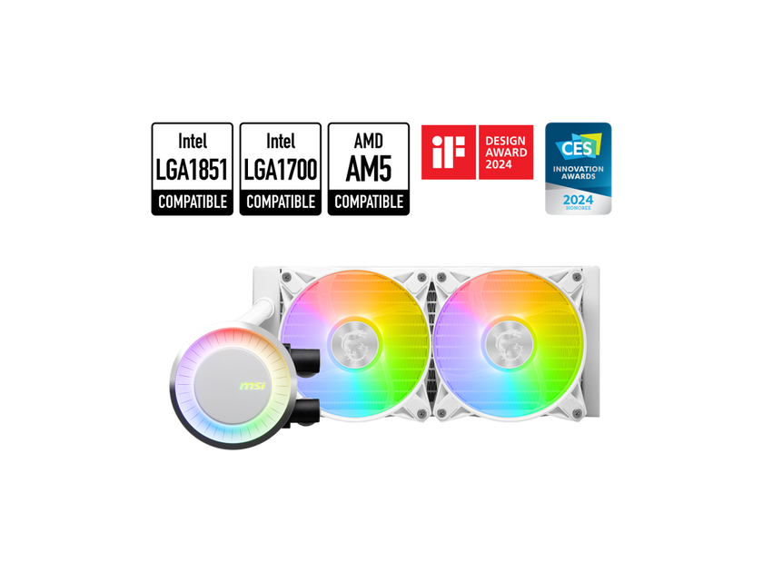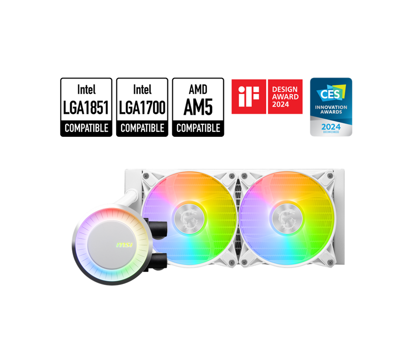 Read moreMSI MAG CoreLiquid E240 White - AIO ARGB CPU Liquid Cooler - Rotating Cap Design - 240mm Radiator - Dual 120mm ARGB PWM Fans - LGA 1700 Ready / AM5 Compatible