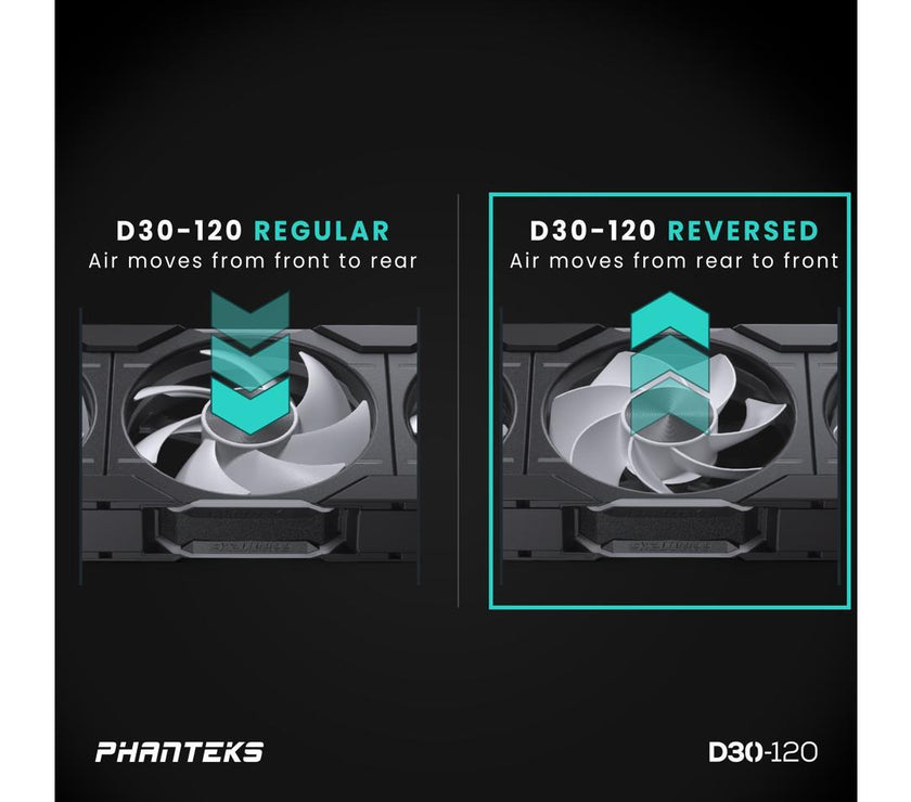 Read morePhanteks D30-120 DRGB PWM Fan, Reverse Airflow Model, Premium D-RGB Performance Fan, ARGB/DRGB lighting, Daisy-chain Fan Linking system, Black