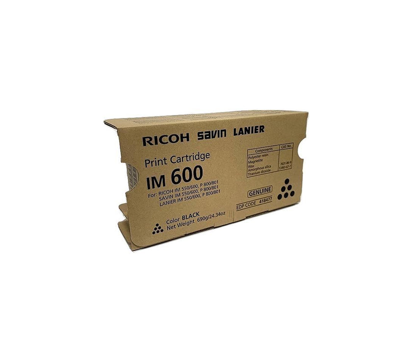 RICOH USA 418477 RICOH IM600 BLACK TONER CARTRIDGE. FOR USE IN P800 P801. ESTIMATED YIELD 25,500