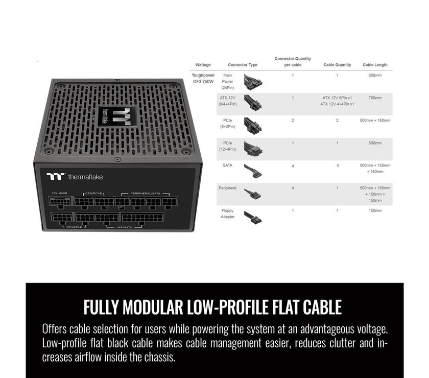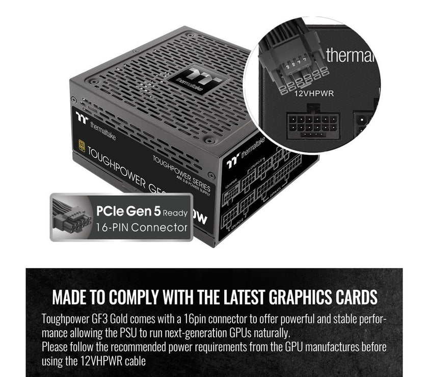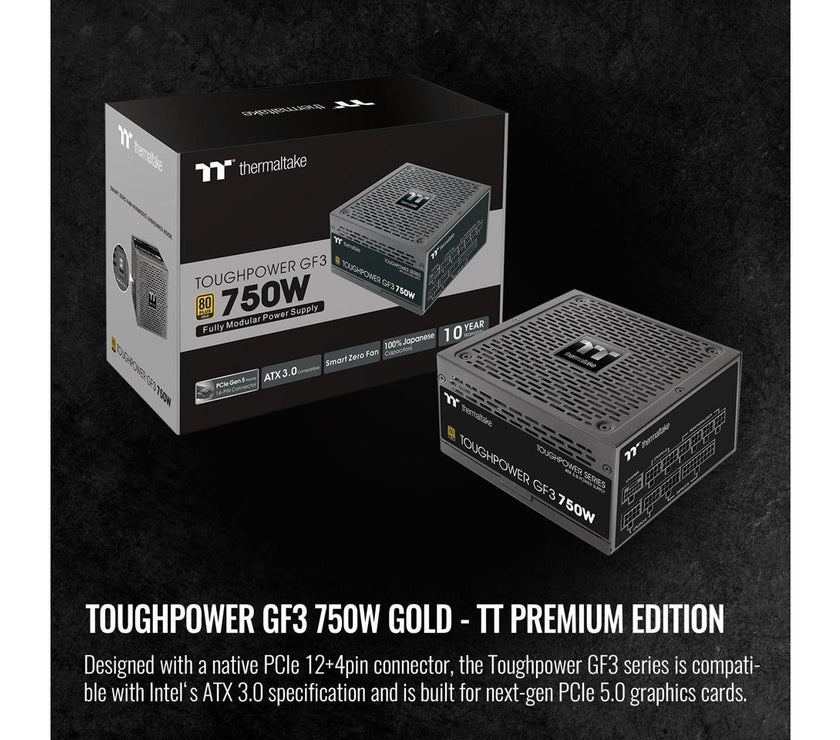 Thermaltake Toughpower GF3 750W, True 300W 12VHPWR Connectors on PSU & NVIDIA RTX 40 series, ATX 3.0/PCI-E 5.0 Ready, 80+ Gold, SLI/Crossfire Ready Power Supply, PS-TPD-0750FNFAGU-4, 10 Year Warranty