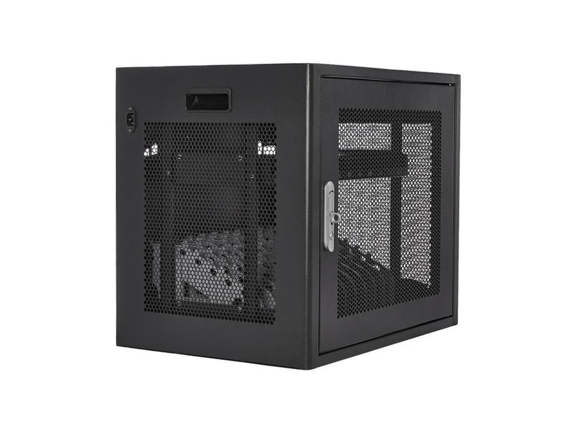 - Secure locking door and power supply compartment keeps devices safe. Option to add your own padlock for extra security